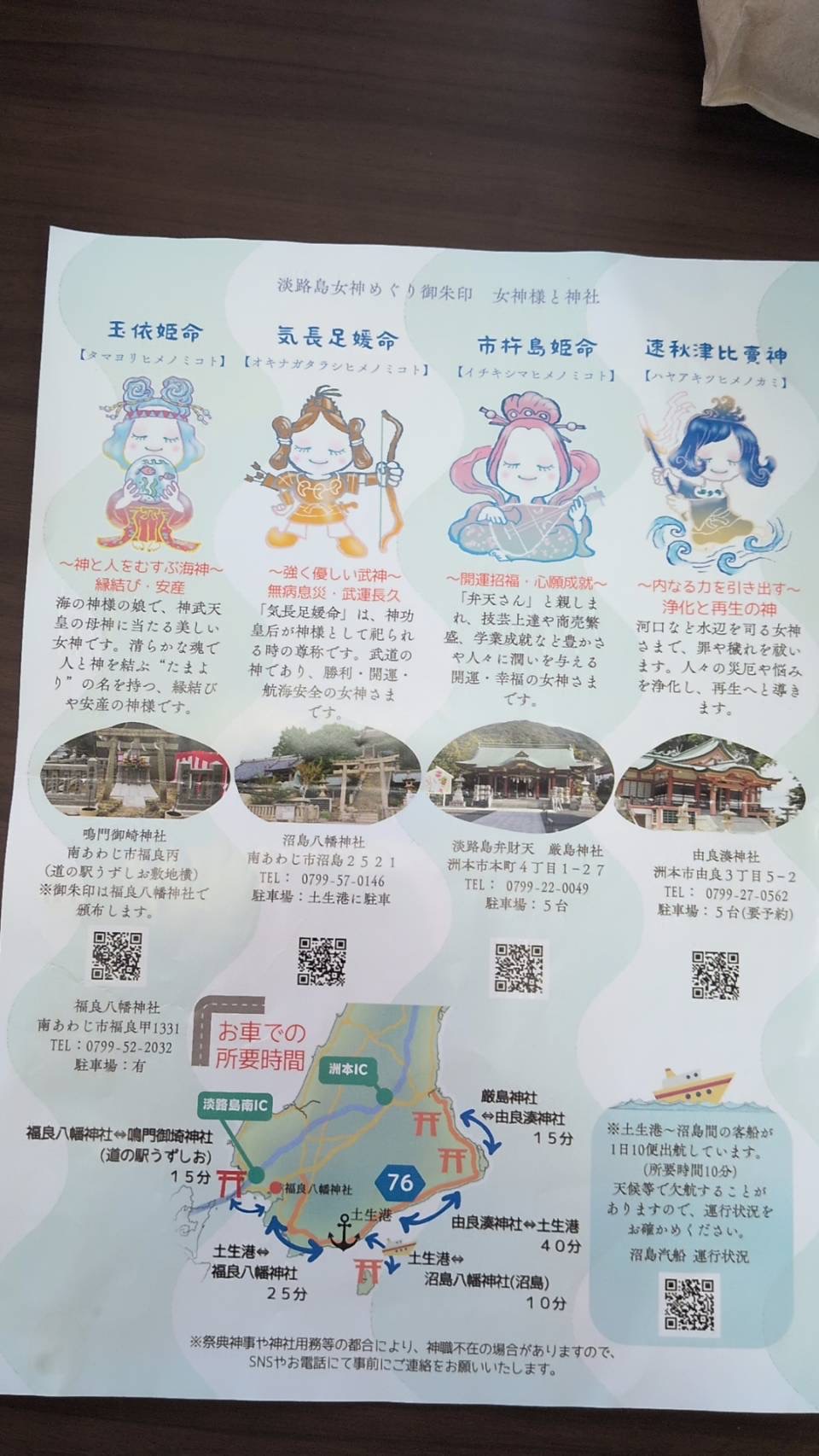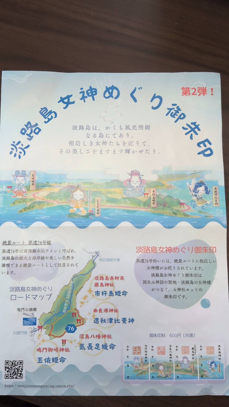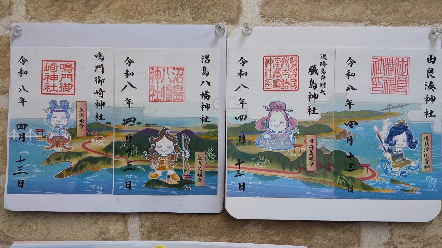 今回のお目当ては、島内4つの神社をめぐる御朱印巡りです。この4社の御朱印をすべて集めて並べると、淡路島の絵が1枚完成するという仕掛けになっているんです。これは集めずにはいられない…!
